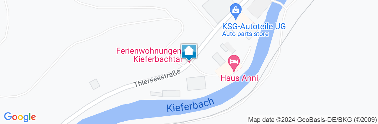 Inntalautobahn (A93) Rosenheim - Richtung Kufstein; Ausfahrt Kiefersfelden. Links in den Ort, nach der 1. Ampel rechts in die Thierseestrasse abbiegen; der Strasse ca 4 km folgen, dann haben Sie Ihr Feriendomizil erreicht.Richtlinien